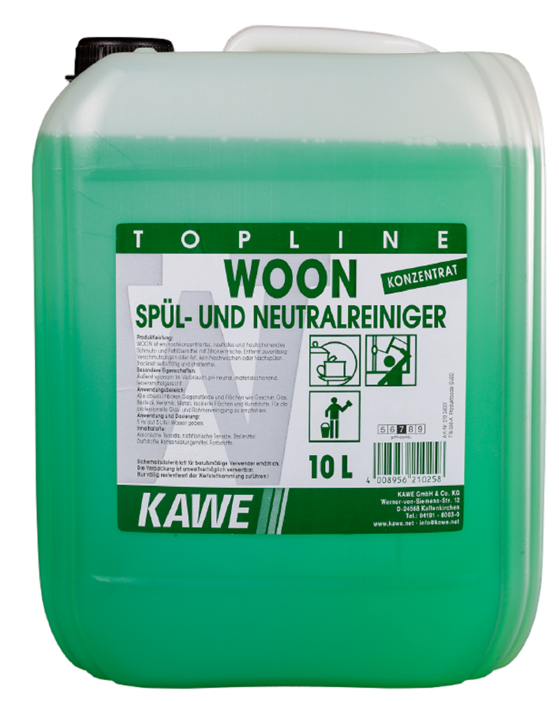 WOON ist ein hochkonzentriertes, neutrales und hautschonendes Schmutz- und Fettlösemittel mit Zitronenfrische. Entfernt zuverlässig Verschmutzungen aller Art, kein Nachwischen oder Nachspülen. Trocknet selbsttätig und streifenfrei.